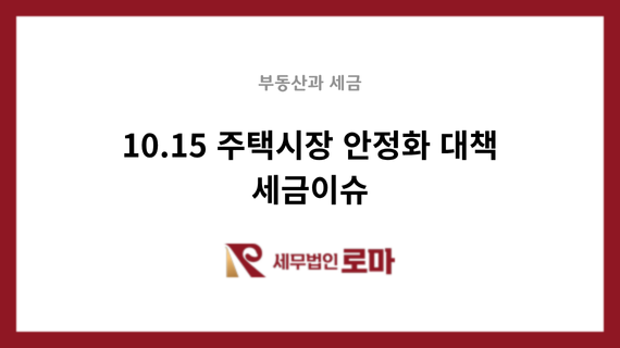[부동산과 세금] 10.15 주택시장 안정화 대책 세금이슈